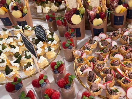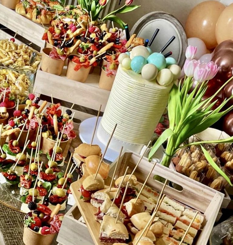 One popular catering option is grazing buffet tables, which are a more casual option that allows guests to help themselves to a variety of delicious savouries & treats.